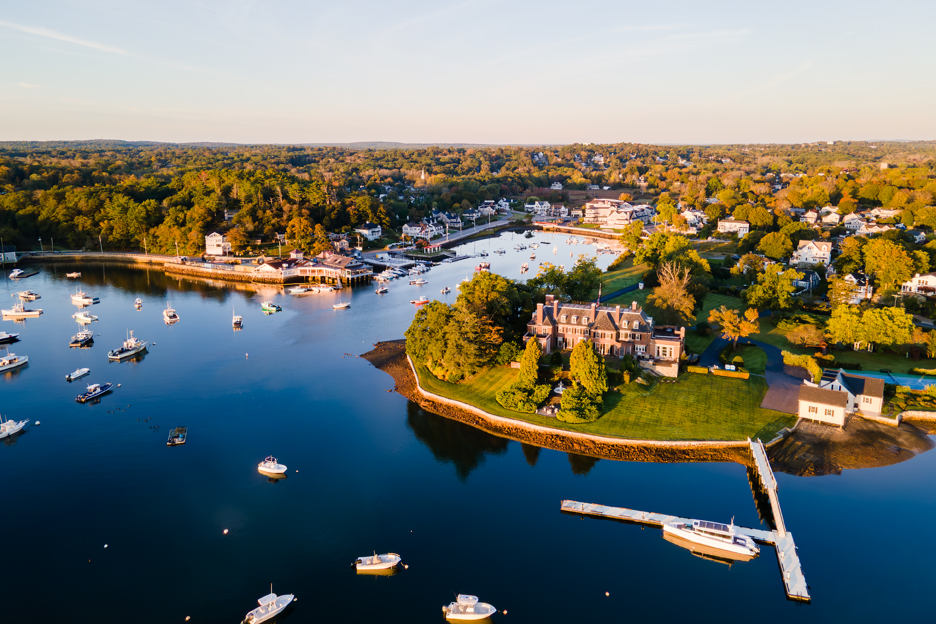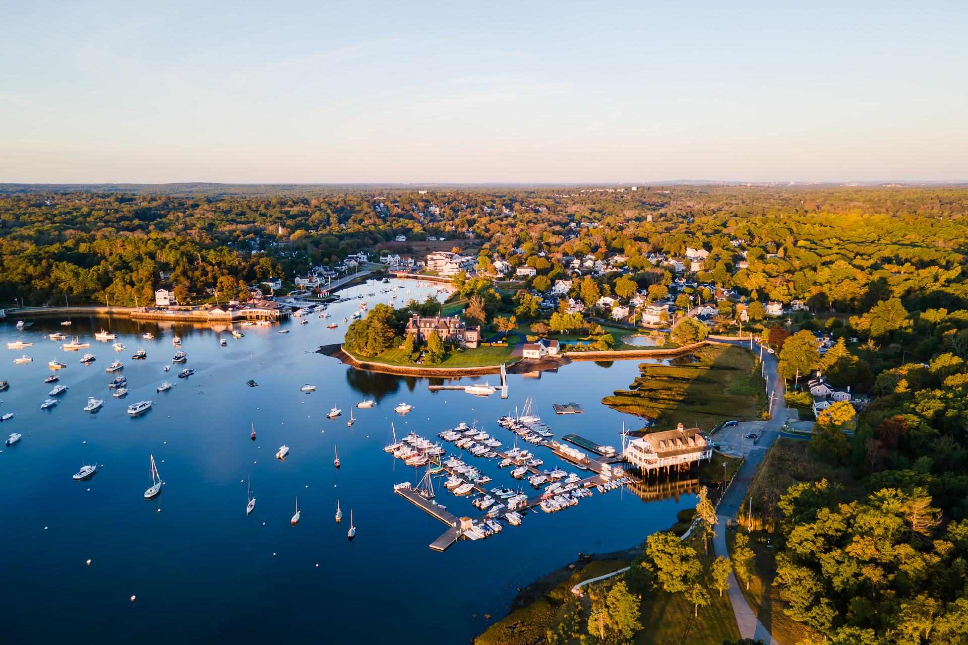 Aerial view of Cohasset Cove just after sunrise in early fall, showing landmarks such as The Oaks estate, the Cohasset Lobster Pound, and the Yacht Club. With fall colors fast approaching, hopefully these photos offer a small glimpse of what’s around the corner.